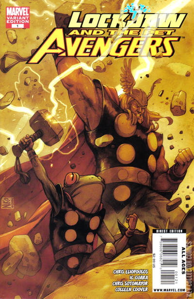 And there came a day, a day unlike any other, when Earth's mightiest heroes were unaware of a threat greater than all of them could handle. And on that day, a teleporting puppy scoured the world to assemble a team of animals to fight the foes no single beast could withstand! Strap on your collar and hop on-board the adventures of LOCKJAW, LOCKHEED, REDWING, HAIRBALL, and an all-new FROG THOR!