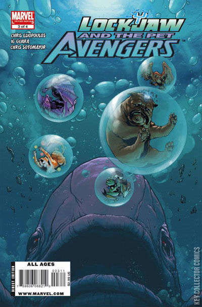 If you thought battling Devil Dinosaur was bad, you were barking up the wrong tree! Join Lockjaw and the rest of the Pet Avengers on a voyage under the sea! Their search continues for the Infinity Gems, and it leads them right to the bottom of the ocean. Can they find the gem before drowning or getting eaten by Giganto? If you don't pick up the third part of this fan-favorite series, you're all wet!