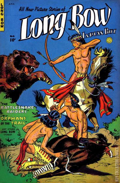 Home / Fiction House / Long Bow / Long Bow #6 Fiction House Released January 1952 Long Bow #6 Add to Collection Want It Synopsis No synopsis available. Add to Collection Buy it on eBay Buy on eBay Low $5 Mid $15 High $55 Synopsis No synopsis available. Details Series Long Bow Cover Date January 1952 Pages 36 UPC N/A Cover Price $0.10 Final Orders Cutoff N/A Creators Cover Artist Maurice Whitman Price Guide Log in or subscribe to access detailed graded price information and market insights. Log In Subscribe