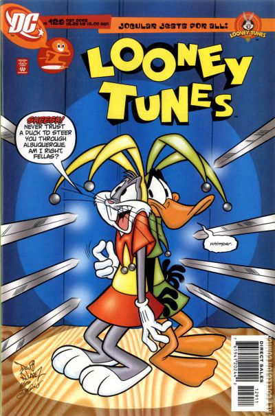Cover by David Alvarez & Mike DeCarlo. Stories by Earl Kress, Scott Cunningham and Sholly Fisch. Art by Neal Sternecky & Scott McRae and Walter Carzon & Ruben Torreiro. Duck Dodgers needs to pass his annual Space Pilot's Evaluation, but needs help from Cadet to do it in "Tired and Tested"! Plus, Bugs drops in on Elmer's School of Tango, and drives him crazy in "Tango Tangle"! And Daffy stops by Porky's Cafe, and takes advantage of a sign that reads 'The Customer is Always Right' in "Droop du Jour"! 44 pages, full color. Cover price $2.25.