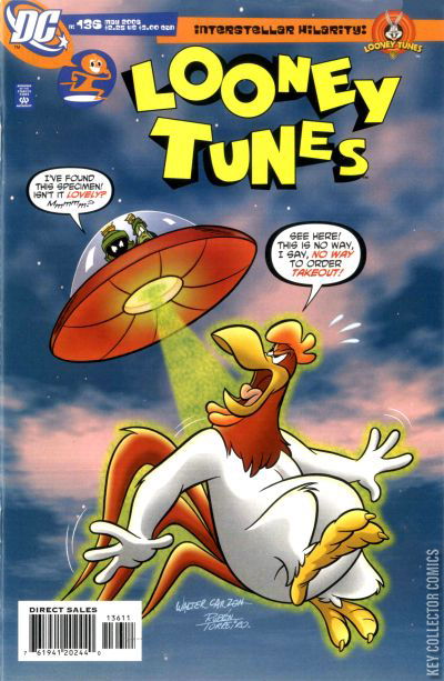 Cover by David Alvarez & Mike DeCarlo. Stories by Earl Kress, Scott Cunningham and Sholly Fisch. Art by Neal Sternecky & Scott McRae and Walter Carzon & Ruben Torreiro. Duck Dodgers needs to pass his annual Space Pilot's Evaluation, but needs help from Cadet to do it in "Tired and Tested"! Plus, Bugs drops in on Elmer's School of Tango, and drives him crazy in "Tango Tangle"! And Daffy stops by Porky's Cafe, and takes advantage of a sign that reads 'The Customer is Always Right' in "Droop du Jour"! 44 pages, full color. Cover price $2.25.