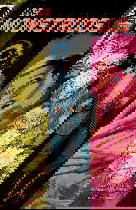In the city of Los Monstruos, werewolf P.I. Perry Cutter had thought he'd seen it all. But now he's in a deadly trap facing crooked vampire cops on all sides, with a surprise villain pulling the strings and no way out. It'll take a miracle or a man-monster to help him survive the night. Will Perry solve the case? Will he finally get that date with Rosie the vampire waitress? Find these answers and much, much more in the last exciting issue of the first horrific arc of Los Monstruos.