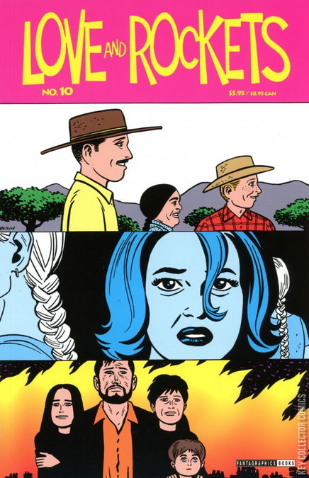 It's a special double-size issue of Love and Rockets, celebrating the tenth issue of Volume II. In the 20-page final chapter of Jaime's latest "Maggie" serial, a figure rises out of the ashes of Izzy's burned-down house, the demonic black dogs appear again, and Maggie is at the center of it all. On the Beto side of the fence, "Julio's Day" serial returns with the first of several longer chapters in issues to come: Julio and his brother come home from working in the city and the rain stops, and a family tragedy changes the course of their lives. This issue also includes the ultimate "Roy" epic, as Roy is joined by all the various characters from recent L&R short stories (Madame X, her psychiatrist Dr. Fausto, the Little Stunt Boy, and sister Mary Joseph and the monster she covets) in a JLA-type super-team on a mission to combat Roy's nemesis the Froat. There's also a "Whatever Happened to...?" one-pager for many of the older L&R characters (Castle Radium, Inez and Bang Bang, Errata Stigmata, Emico from Twitch City, and more) — and the conclusion of the Beto/Mario thriller "Me for the Unknown"! Plus...some surprises! 50 pages of great all-new work from Los Bros., a veritable graphic novel's worth of comics for the price of a comic book!