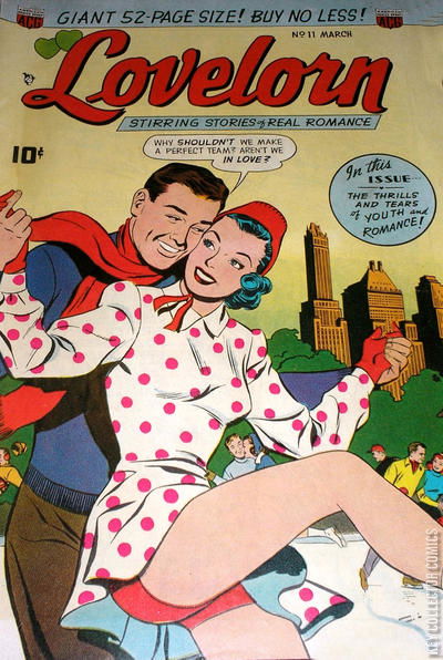 Home / ACG / Lovelorn / Lovelorn #11 ACG Released March 1951 Lovelorn #11 Add to Collection Want It Synopsis No synopsis available. Issue 11 of 74 Add to Collection Buy it on eBay Buy on eBay Low $30 Mid $85 High $280 Synopsis No synopsis available. Details Series Lovelorn Cover Date March 1951 Pages 52 UPC N/A Cover Price $0.10 Final Order Cutoff N/A Creators No creators listed. Price Guide Log in or subscribe to access detailed graded price information and market insights. Log In Subscribe