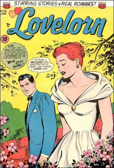 Home / ACG / Lovelorn / Lovelorn #38 ACG Released June 1953 Lovelorn #38 Add to Collection Want It Synopsis No synopsis available. Issue 38 of 74 Add to Collection Buy it on eBay Buy on eBay Low $25 Mid $75 High $250 Synopsis No synopsis available. Details Series Lovelorn Cover Date June 1953 Pages 36 UPC N/A Cover Price $0.10 Final Order Cutoff N/A Creators No creators listed. Price Guide Log in or subscribe to access detailed graded price information and market insights. Log In Subscribe