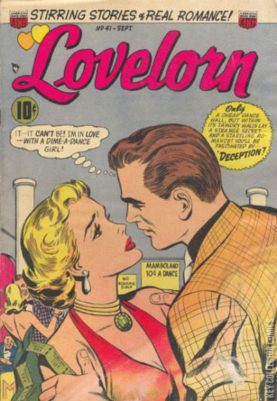 Home / ACG / Lovelorn / Lovelorn #41 ACG Released September 1953 Lovelorn #41 Add to Collection Want It Synopsis No synopsis available. Issue 41 of 74 Add to Collection Buy it on eBay Buy on eBay Low $25 Mid $75 High $250 Synopsis No synopsis available. Details Series Lovelorn Cover Date September 1953 Pages 36 UPC N/A Cover Price $0.10 Final Order Cutoff N/A Creators No creators listed. Price Guide Log in or subscribe to access detailed graded price information and market insights. Log In Subscribe