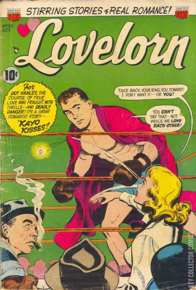 Home / ACG / Lovelorn / Lovelorn #42 ACG Released October 1953 Lovelorn #42 Add to Collection Want It Synopsis No synopsis available. Issue 42 of 74 Add to Collection Buy it on eBay Buy on eBay Low $25 Mid $75 High $250 Synopsis No synopsis available. Details Series Lovelorn Cover Date October 1953 Pages 36 UPC N/A Cover Price $0.10 Final Order Cutoff N/A Creators No creators listed. Price Guide Log in or subscribe to access detailed graded price information and market insights. Log In Subscribe