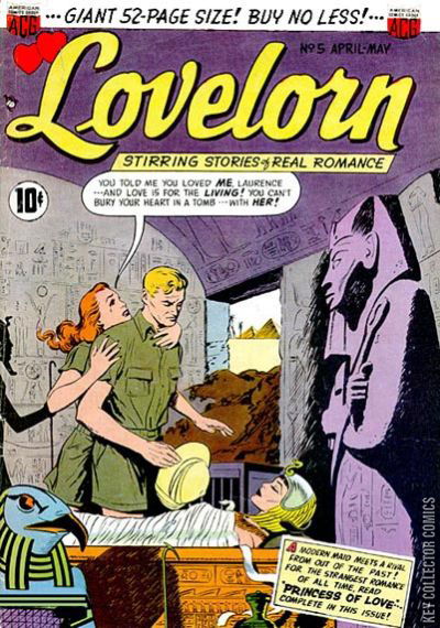 Home / ACG / Lovelorn / Lovelorn #5 ACG Released May 1950 Lovelorn #5 Add to Collection Want It Synopsis No synopsis available. Issue 5 of 74 Add to Collection Buy it on eBay Buy on eBay Low $45 Mid $135 High $450 Synopsis No synopsis available. Details Series Lovelorn Cover Date May 1950 Pages 52 UPC N/A Cover Price $0.10 Final Order Cutoff N/A Creators Inker Ken Bald Artist Ken Bald Price Guide Log in or subscribe to access detailed graded price information and market insights. Log In Subscribe