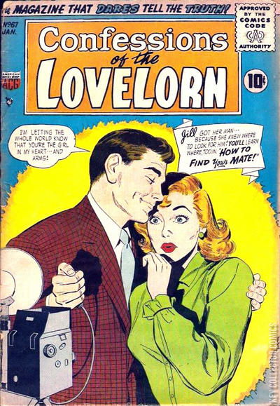 Home / ACG / Lovelorn / Lovelorn #67 ACG Released January 1956 Lovelorn #67 Add to Collection Want It Synopsis No synopsis available. Issue 66 of 74 Add to Collection Buy it on eBay Buy on eBay Low $8 Mid $25 High $90 Synopsis No synopsis available. Details Series Lovelorn Cover Date January 1956 Pages 36 UPC N/A Cover Price $0.10 Final Order Cutoff N/A Creators No creators listed. Price Guide Log in or subscribe to access detailed graded price information and market insights. Log In Subscribe