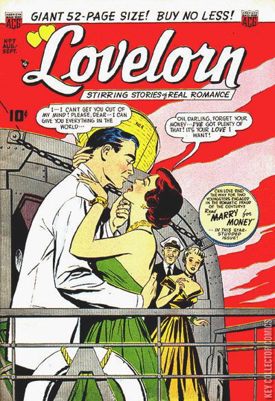 Home / ACG / Lovelorn / Lovelorn #7 ACG Released September 1950 Lovelorn #7 Add to Collection Want It Synopsis No synopsis available. Issue 7 of 74 Add to Collection Buy it on eBay Buy on eBay Low $12 Mid $35 High $115 Synopsis No synopsis available. Details Series Lovelorn Cover Date September 1950 Pages 52 UPC N/A Cover Price $0.10 Final Order Cutoff N/A Creators No creators listed. Price Guide Log in or subscribe to access detailed graded price information and market insights. Log In Subscribe