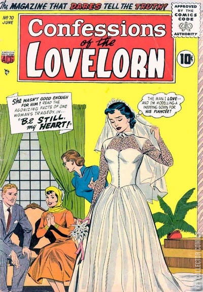 Home / ACG / Lovelorn / Lovelorn #70 ACG Released June 1956 Lovelorn #70 Add to Collection Want It Synopsis No synopsis available. Issue 69 of 74 Add to Collection Buy it on eBay Buy on eBay Low $8 Mid $25 High $90 Synopsis No synopsis available. Details Series Lovelorn Cover Date June 1956 Pages 36 UPC N/A Cover Price $0.10 Final Order Cutoff N/A Creators No creators listed. Price Guide Log in or subscribe to access detailed graded price information and market insights. Log In Subscribe