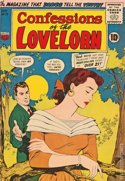 Home / ACG / Lovelorn / Lovelorn #73 ACG Released September 1956 Lovelorn #73 Add to Collection Want It Synopsis No synopsis available. Issue 72 of 74 Add to Collection Buy it on eBay Buy on eBay Low $8 Mid $25 High $90 Synopsis No synopsis available. Details Series Lovelorn Cover Date September 1956 Pages 36 UPC N/A Cover Price $0.10 Final Order Cutoff N/A Creators No creators listed. Price Guide Log in or subscribe to access detailed graded price information and market insights. Log In Subscribe