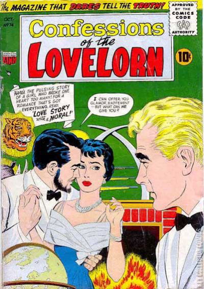 Home / ACG / Lovelorn / Lovelorn #74 ACG Released October 1956 Lovelorn #74 Add to Collection Want It Synopsis No synopsis available. Issue 73 of 74 Add to Collection Buy it on eBay Buy on eBay Low $8 Mid $25 High $90 Synopsis No synopsis available. Details Series Lovelorn Cover Date October 1956 Pages 36 UPC N/A Cover Price $0.10 Final Order Cutoff N/A Creators No creators listed. Price Guide Log in or subscribe to access detailed graded price information and market insights. Log In Subscribe
