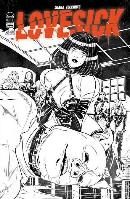 The LOVESICK CLUB is an exclusive, subscribers-only site on the dark web that offers the best in erotic and ultra-violent entertainment. There, matriarch Domino and her fellow dominatrixes punish and torture none other than their own loyal subscribers, many of whom pay good money to meet their end by her hand in front of a large, anonymous audience. But in the eyes of her rage-filled haters, Domino is the MOTHER DEMON, a deranged succubus who oppresses men by turning them into her slaves. For this crime against men, she must be hunted down and PUNISHED.