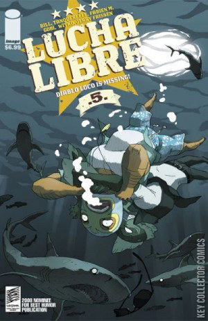 Diablo Loco's missing. The Luchadores 5 hit Huntington Beach to find him. Can they deny their lust for bikini-clad ladies to save their masked comrade? Plus: Tequila battles Bigfoot, the Tikitis take on a mad scientist, Profesor Furia passes gas and we discover our heroes' traumatic childhoods in Los Triplicados.