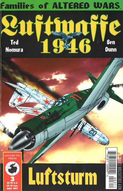 In this alternate-history world, the Axis powers succeeded in extending the war into 1946, allowing artists Nomura and Dunn to create fanciful jet fighters and other aircraft as part of Hitlers Luftwaffe air force. In April 1946, the Allied Atlantic fleet engages the Axis fleet at the Falkland Islands, but this turns out to be a decoy. Meanwhile, the American stealth sub "Hunley" encounters the giant Nazi battleship carrier "Hindenburg."