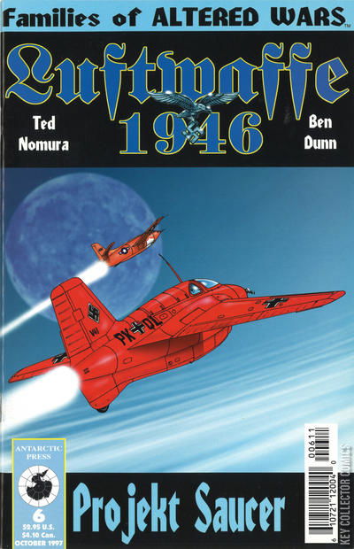 In this alternate-history world, the Axis powers succeeded in extending the war into 1946, allowing artists Nomura and Dunn to create fanciful jet fighters and other aircraft as part of Hitlers Luftwaffe air force. As the war continues, the Luftwaffe experiments with saucer-shaped flying craft, as they did in actual history – only this time, Germanys flying saucers actually get off the ground.