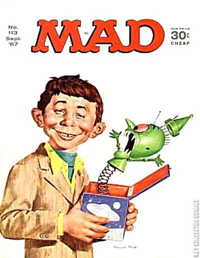 Cover art by Norman Mingo. Beetle Bailey strip by Mort Walker. "Some Mad Auto Safety Features," script and art by Al Jaffee; Add-on devices for the auto designed to counteract driver's bad habits. "Water Sports Foto-plays"; Humorous captions are added to wire service photos of various water sports. "The Iron Horselaff," script by Dick DeBartolo, art by Mort Drucker; In a parody of the TV series "The Iron Horse," a shady womanizer wins a railroad in a crooked poker game and attempts to complete construction of the line in spite of interference from interested opponents and his own ineptitude. Cartoons in the margins by Sergio Aragones. "At the Academy of Electric Fan Repair," script and art by Don Martin; A teacher introduces his students to an electric fan. "If Famous Poets Had Written Mother Goose," script by Frank Jacobs, art by Jack Rickard; Nursery rhymes written in the style of William Shakespeare, Ogden Nash, Rudyard Kipling, Carl Sandberg and others. "Spy Vs. Spy," script and art by Antonio Prohias; The Black Spy tries to stab the White Spy in his sleep. "The Lighter Side of Going Steady," script and art by Dave Berg; The trials and pitfalls of teenage romance. "Everyday Guts," script by Larry Siegel, art by Bob Clarke; A niche magazine making everyday occurrences seem like harrowing adventures. "Spy Vs. Spy" by Antonio Prohias. "Mad Mini-Movies: Dr. Zhicago," script by Dick DeBartolo, art by Jack Davis; Parody of the film "Dr. Zhivago": A pompous doctor and his bimbo nurse get involved in the Russian Revolution. "Mad Mini-Movies: Is Paris Boring?", script by Lou Silverstone, art by Mort Drucker; In a parody of the film "Is Paris Burning?," a Frenchman lobbies the Allied forces to oust the Germans from France. "Mad Mini-Movies: Throw-Up," script by Arnie Kogen, art by Bruce Stark; In a parody of the film "Blowup," a self-important fashion photographer bounces from woman to woman, never finding self-satisfaction. "Where Is the Current Trend in Popular Literature Headed?" Mad Fold-In by Al Jaffee.