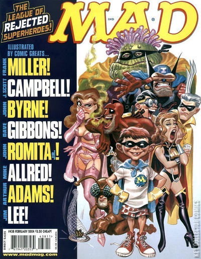 Sergio Aragonès Presents A Mad Look at the Superbowl," script and art by Sergio Aragonès "The League of Rejected Superheroes," script by Jeff Kruse, art by Frank Miller, J. Scott Campbell, Dave Gibbons, John Byrne, John Romita, Jr., Michael Allred, Arthur Adams, and Jim Lee