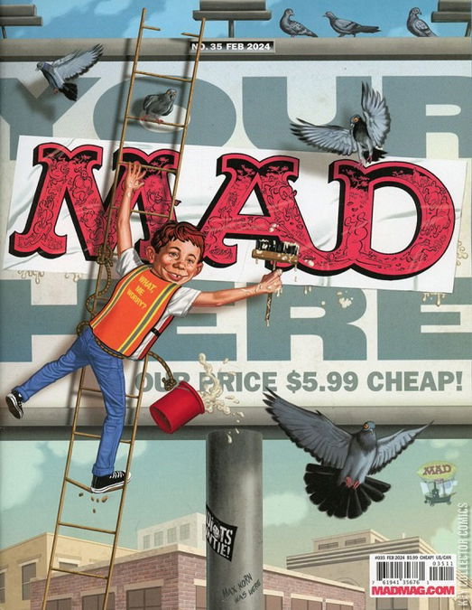 Home / DC / Mad / Mad #35 DC Released December 2023 Mad #35 Add to Collection Want It Synopsis No synopsis available. Add to Collection Buy it on eBay Buy on eBay Low $0 Mid $0 High $0 Synopsis No synopsis available. Details Series Mad Cover Date December 2023 Pages N/A UPC N/A Cover Price N/A Final Orders Cutoff N/A Creators No creators listed. Price Guide Log in or subscribe to access detailed graded price information and market insights. Log In Subscribe