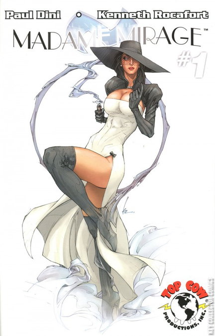 Superstar writer, Paul Dini (DETECTIVE COMICS, LOST) makes an explosive return to Top Cow in 2007 when he brings brand new character Madame Mirage to the Top Cow Universe! But who is this beautiful woman who appears out of the mist? As deadly as she is beautiful, she is cutting a bloody path through the city's villains, who now wear suits and have "legitimate" businesses. But who is her ultimate prey? And how does this Mirage take form? And why is her destiny and that of her sidekick Harper so irrevocably entwined? These and many other questions will be asked along with the most pivotal question of all ? Who is Madame Mirage? Dini weaves a tale of murder, intrigue and revenge in a world of high-tech espionage and treachery. Joining Dini is rising artistic star, Kenneth Rocafort (HUNTER-KILLER) with his atmospheric and kinetic style. The first issue features two covers by sensual cover artist Greg Horn (SUPERMAN RETURNS, SHE-HULK) as well as a stunning cover by series artist Rocafort. Madame Mirage ? you'll never forget her? if you can make her acquaintance and live to tell the tale? Interior credits indicate Cover A is Rocafort's and Cover B is Horn's, despite them being originally solicited the other way around.