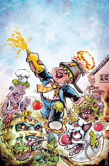 For the first time in recorded history, the 'heavyweights of gross' have combined forces in a massive merchandising blitz that pits the Madballs against the Garbage Pail Kids! And, as part of this blitz, Dynamite presents the comic book cross-over of these iconic 80s brands! For over three decades, Madballs and GPK have both been known as the 'grossest of the gross', co-ruling counterculture with their pun-heavy names and subversive humor. This all-new limited series event features the first time these two delightfully crude forces have ever met! This issue: ''Block Busted'', ''Disorder in the Court,'' and two (!) Puzzle Pages! Written by Sholly Fisch, each issue features three incredible covers: Legendary Garbage Pail Kids artist Joe Simko, series artist Jason Crosby and a special trading card team-up cover, created specially for this momentous meeting of the (depraved) minds!