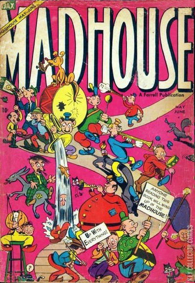 Home / Farrell / Madhouse / Madhouse #2 Farrell Released June 1954 Madhouse #2 Add to Collection Want It Synopsis No synopsis available. Issue 2 of 4 Add to Collection Buy it on eBay Buy on eBay Low $55 Mid $160 High $535 Synopsis No synopsis available. Details Series Madhouse Cover Date June 1954 Pages N/A UPC N/A Cover Price $0.10 Final Order Cutoff N/A Creators No creators listed. Price Guide Log in or subscribe to access detailed graded price information and market insights. Log In Subscribe