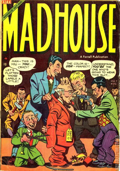 Home / Farrell / Madhouse / Madhouse #3 Farrell Released August 1954 Madhouse #3 Add to Collection Want It Synopsis No synopsis available. Issue 3 of 4 Add to Collection Buy it on eBay Buy on eBay Low $35 Mid $100 High $325 Synopsis No synopsis available. Details Series Madhouse Cover Date August 1954 Pages 36 UPC N/A Cover Price $0.10 Final Order Cutoff N/A Creators No creators listed. Price Guide Log in or subscribe to access detailed graded price information and market insights. Log In Subscribe