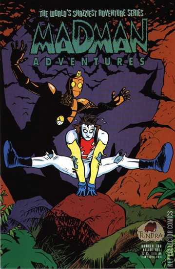 The first color Madman miniseries. Madman travels back into prehistory and encounters dinosaurs. Also, a painted Madman pinup by Al Columbia