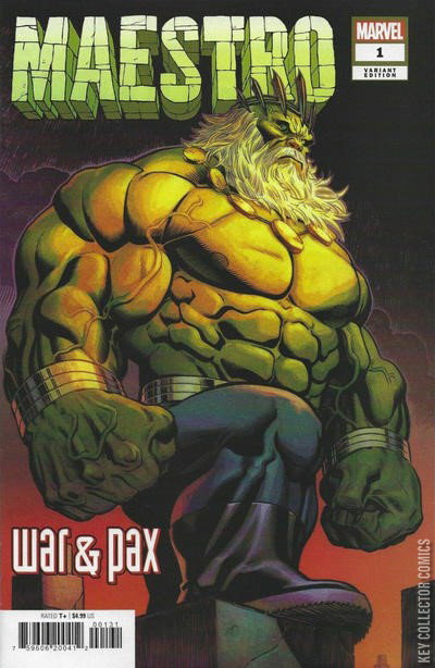WAR & PAX, PART ONE: VENI PETER DAVID AND THE MAESTRO RETURN IN A BRAND-NEW SERIES! The man once known as the Hulk is now neither man, nor Hulk—call him only THE MAESTRO! After deposing Dystopia’s ancient ruler, the Maestro sets his sights even bigger. It’s time the entire planet Earth recognized their one true god! But the Maestro isn’t the only immortal left…and if he wants to truly dominate the planet, he’ll have to face the most powerful beings in creation! PETER DAVID continues the tale that began decades ago in the legendary Future Imperfect! CONTINUED FROM MAESTRO #5