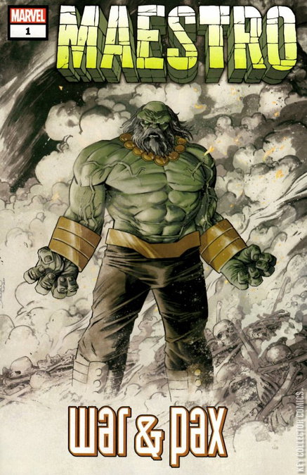 WAR & PAX, PART ONE: VENI PETER DAVID AND THE MAESTRO RETURN IN A BRAND-NEW SERIES! The man once known as the Hulk is now neither man, nor Hulk—call him only THE MAESTRO! After deposing Dystopia’s ancient ruler, the Maestro sets his sights even bigger. It’s time the entire planet Earth recognized their one true god! But the Maestro isn’t the only immortal left…and if he wants to truly dominate the planet, he’ll have to face the most powerful beings in creation! PETER DAVID continues the tale that began decades ago in the legendary Future Imperfect! CONTINUED FROM MAESTRO #5