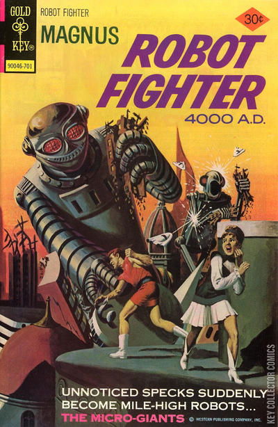 FINAL ISSUE...Magnus fights robots that float down to Earth as tiny specks and then rapidly grow impossibly to gargantuan size. He must smash his way inside them to defeat their alien technology.
