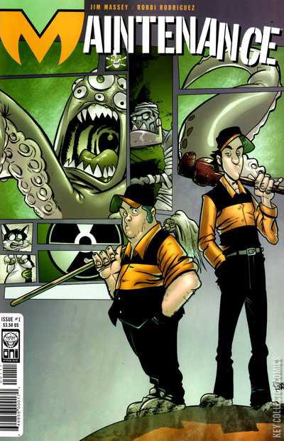 You think your job is bad? Doug and Manny have you beat! These guys are janitors! But they're not your typical custodial crew--no, sir! They're the guys who keep things shiny and clean at TerroMax, Inc., the world's biggest and best evil science think tank! When they're not dealing with toxic spill monsters and talking mansharks, they still have to worry about mad scientists, crazy would-be dictators, and the cute girl who works at reception! Fresh talent Jim Massey & Robbi Rodriguez have created the funniest, most outlandish Oni Press series since BARRY WEEN! Doug and Manny janitors for TerroMax, Inc. clean up biological messes and spend happy hour with Cobra McPunch.
