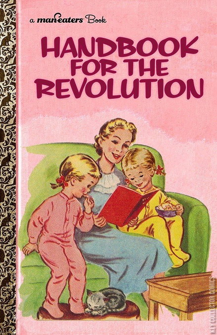 “HANDBOOK FOR THE REVOLUTION” Our 12-issue run of MAN-EATERS culminates with this comic/sacred text/satirical manifesto/cat care informational booklet/step-by-step instruction manual for dismantling the patriarchy. Each copy comes with a little bit of hope, at no additional cost. Amount of hope may vary. Hope is limited. Some readers may receive fury instead.