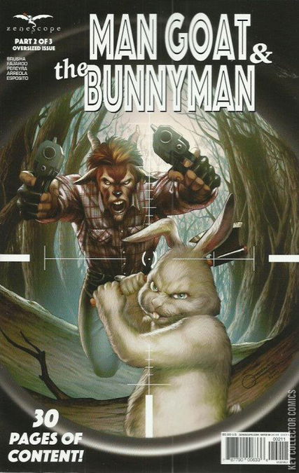 The stakes are raised as Phil and Floyd find themselves up against a mysterious cult whose members are taking and killing summer vacationers. All the while, after months of searching, a group of obsessed monster hunters has finally tracked the cryptid roomies down. And these hunters are out for blood. Will Phil and Floyd be able to stay alive long enough to save the day once again, or will this be the end of the road for Man Goat and the Bunny Man? Be sure that you pick up the series that puts to shame the other books in your friggin' comics pile! Do it! Pick it up! Now with 32- pages of Man Goat & The Bunny Man awesome-story action!