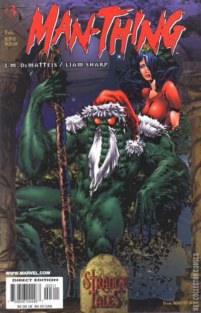 Eric Simon Payne (Devil-Slayer) sits huddled on the floor on the Rosewell Sanitarium in Charles, Massachusetts, while images of his past, both real and imagined, play across his tortured mind. It is Christmas Eve, and Nurse Garcia encourages him to join the other inmates in singing carols, but he becomes agitated when he sees her appear demonic, eventually becoming the Man-Thing, burning him. Eric does come to his senses, and calms down.In the Everglades, Ellen Brandt, hungry and tired, wearies of the wait to begin her and the Man-Thing's quest to repair the shattered Nexus of All Realities, and angrily expresses her second thoughts. Then Mr. Ternineus appears, dressed in a Santa Claus robe and carrying a long wooden staff. He enigmatically encourages Ellen to forge ahead and vanishes, leaving the staff with her. When she picks it up, she hears ancient voices emanating from it, then a Christmas feast materializes, which she eagerly tears into.Back at Rosewell, Eric approaches fellow inmate Sorrow, who is mute, but able to communicate telepathically, in a dark corner of the room. They join hands and briefly move into another dimension where Sorrow appears in a more divine form, while Eric is garbed in his Devil-Slayer outfit. Sorrow tries to show Eric the good in the world, but he can't bring himself to accept it, and they return to the reality of the asylum. Someone in a Santa suit hands out gifts, while an orderly says he doesn't recall the institution having hired a Santa. The Santa, speaking with Termineus' voice, hands Eric a tiny demon which grows and is joined by a demon horde, overwhelming Eric.In the swamp, the staff calls to Ellen, and it projects an image of the sanitarium, where she herself was once committed. She and the Man-Thing walk through a portal toward the asylum, but when they materialize in Charles, they find an enormous pit where the building had stood.
