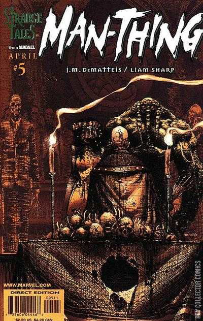 The Man-Thing and Devil-Slayer are engulfed in flames, but rather than a fire that burns, it is a purging blaze that grows to encompass the Rosewell Sanitarium, as well as the town of Charles, Massachusetts. When the flames die away, the asylum has been returned to its proper place, Eric Simon Payne, the Devil-Slayer, has been cured of his madness, and the fragment of the shattered Nexus of All Realities that was within him is released. From it, the mute telepath Sorrow fashions a necklace and places it around Ellen Brandt's neck. Eric describes to Ellen what he learned in his fiery epiphany: Sorrow is an ancient entity whose purpose at the asylum to provide hope for her fellow inmates. As the Man-Thing and Ellen exit through a mystic portal, the inmates and staff of the sanitarium celebrate Christmas Eve as if nothing unusual had happened. Instead of returning to the swamp, Ellen and Ted Sallis, the man the Man-Thing once was, find themselves living an ideal existence in the midwestern town of Serling in 1947. At first, everything seems in proper order, then Ellen realizes with a start this is not where they belong, even though all her memories of living in Serling ring true. Meanwhile, Mr. Termineus abducts Job, the adopted son of Jack and Gwyneth Burke. He and Job then appear to Ellen in Serling, where she immediately knows Job is the child she gave up for adoption years earlier, having been pregnant at the time she betrayed her husband. With this realization, reality reasserts itself and she and the Man-Thing are once again in the swamp. As Ellen's mind reels regarding the reappearance of their son and her determination to get him back, several menacing robed figures confront them. In their clutches is Howard the Duck, screaming his trademark cry of exasperation.