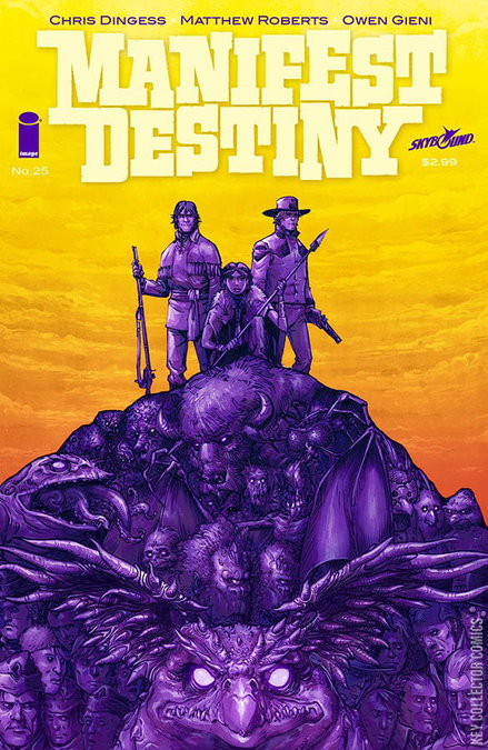 NEW STORY ARC MANIFEST DESTINY hits its twenty-fifth issue in this oversized comic! Lewis & Clark hunker down for the winter, and all is calm…until old enemies emerge from the fog… Plus, a BONUS STORY of Sacagawea, where we learn how a young girl became the warrior she is today.