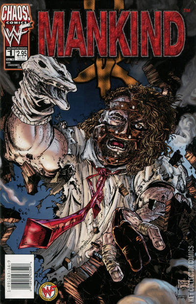 by Steven Grant & Jerry Beck - You've seen him in the pages of The Undertaker and on RAW is WAR ? now Mankind stars in his own special from Chaos! Comics and the WWF! Never one to claim a high degree of mental stability, Mankind suddenly finds himself in the middle of a reality- warping adventure pitting him against an ancient evil and a vile enemy. Is there any hope that he or his trusty elasticized sidekick Mr. Socko will survive to Have a Nice Day? See the Mankind special for your chance to enter Chaos! Comics¹ exclusive Mankind contest! Shipping in a 50/50 ratio with photo and regular cover.