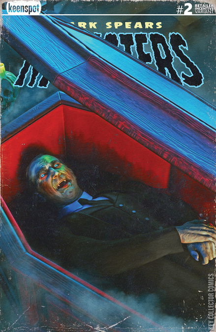 Third printing of the instant sellout SECOND issue, with two all-new covers! From superstar Mark Spears comes all-new horror series Monsters! Based on his hit trading card series of the same name, Spears brings classic monsters to life with a modern twist. Set in the early 1980s, a retired Monster Slayer from a forgotten era learns that an old friend has disappeared, and a malevolent force from his past has resurfaced. Reluctantly, the mysterious Slayer is pulled back into the realm of the supernatural, determined to confront the ancient evil once again and prevent it from wreaking havoc on the world once more. Meanwhile, two seasoned detectives are investigating a series of grisly murders, and a group of kids embark on their own adventure after witnessing what they believe to be their recently deceased neighbor wandering the streets at night. (This title is a Keenspot publication.)