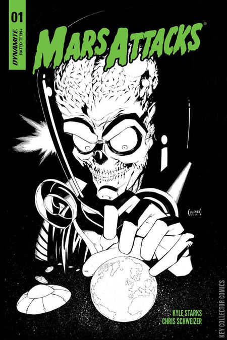Spencer hasn't finished a dang thing in his life. So when he goes to visit his dad to see if maybe he can borrow some money, the last thing on his mind is global survival. Now Spencer and his father are on the run, trying to avoid being spaceray'd by a bunch of destruction happy Martians, heck bent on zapping them dead! Writer Kyle Starks (Rick and Morty, Rock Candy Mountain) and artist Chris Schweizer (The Creeps, Unbeatable Squirrel Girl) bring you the face melting experience of a lifetime with Mars Attacks for the first time at Dynamite!