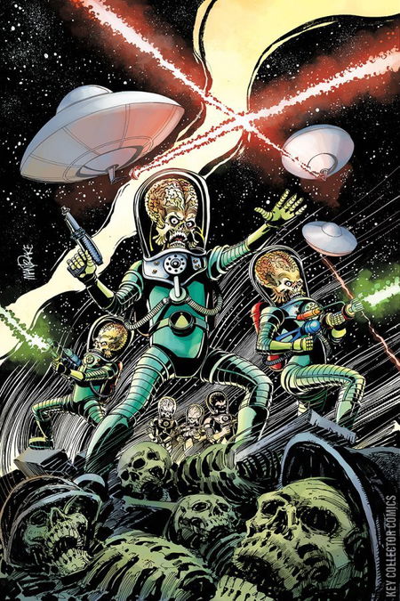 Spencer hasn't finished a dang thing in his life. So when he goes to visit his dad to see if maybe he can borrow some money, the last thing on his mind is global survival. Now Spencer and his father are on the run, trying to avoid being spaceray'd by a bunch of destruction happy Martians, heck bent on zapping them dead! Writer Kyle Starks (Rick and Morty, Rock Candy Mountain) and artist Chris Schweizer (The Creeps, Unbeatable Squirrel Girl) bring you the face melting experience of a lifetime with Mars Attacks for the first time at Dynamite!