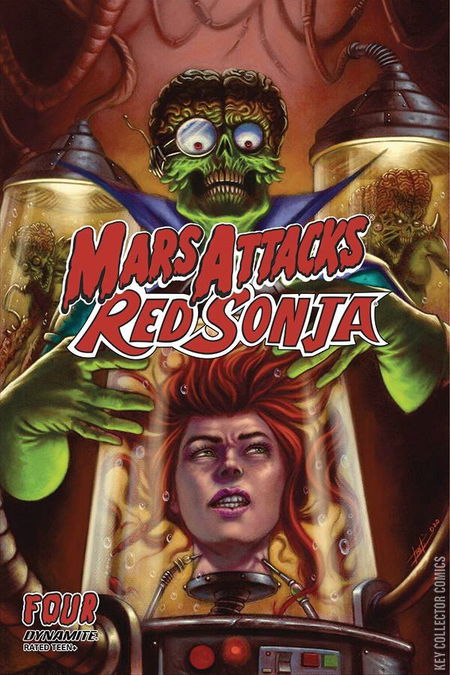 It's the She-Devil-With-A-Sword vs. the She-Creature-With-A-Saucer! Yes, friends, this issue sees a great and terrible battle between Red Sonja-- and Green Sonja! One will triumph, and one will die. Can you guess the victor? We'll give you a hint: It's NOT Red Sonja!
