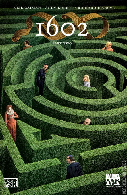 What would the Marvel Universe be like 400 years before it's time?Things have gone a muck in the universe, with well known heroes (Daredevil, Nick Fury, Spider-Man, Dr. Doom) all appearing far before their time. In part two of the epic 1602 adventure things begin to change. Sir Nicholos Fury rides to meet a strange old friend and his odd cohorts. A dark secret is found out about the young miss Virginia Dare. Matthew Murdoch and the mysterious Natasha travell to apprehend a dangerous weapon. Count Otto von Doom is revealed.