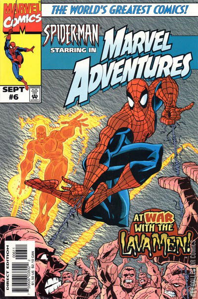 UP FROM THE ASHES Spider-Man teams with the Fantastic Four's super siblings, the Invisible Woman and the Human Torch! Dante's Peak will look like a pimple if the subterranean Lava Men have their way! Now the wondrous web-slinger must join forces with Sue and Johnny to save New York City; otherwise, the coast is toast! It's a cross-pollination of your favorite cartoon stars!