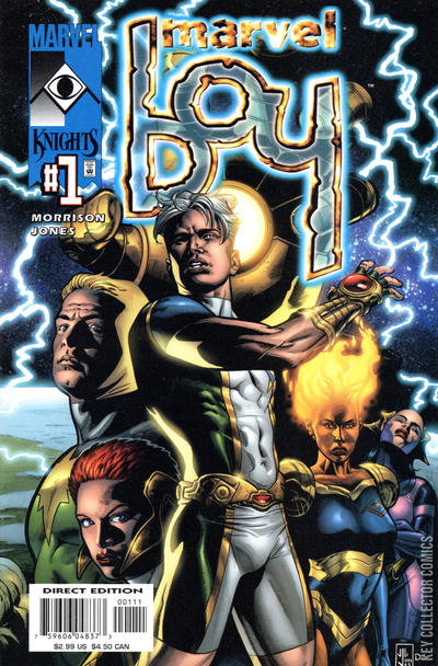Forget everything you know about the name Marvel Boy! Burn the toga and the headband! Shred the cape and wave goodbye to Uranus! This is a very different character. The new Marvel Boy is Noh-Varr, the youngest member of a Kree Diplomatic team. After voyaging for years, these alien super heroes reach Earth, only to be blown out of the sky. Only Noh-Varr survives, and is captured and tortured by the mysterious Midas Organization. Escaping, he vows vengeance on all mankind.