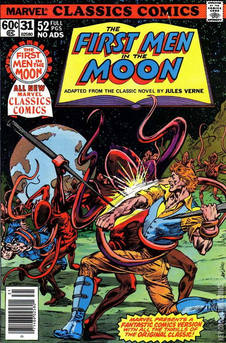 Adapts The First Men on the Moon. Despite the cover proclaiming this was adapted from a Jules Verne's story, that novel was actually written by H.G. Wells; Verne wrote From the Earth to the Moon, an entirely different story.