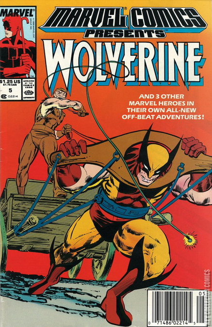 Story #1 - Save The Tiger Part 5 - Wolverine sees himself walking across an endless desert. His hands are tied to a wooden log accross his shoulders. Its hot and Wolverine feels as if he's dying.Suddenly, Sapphire Styx comes out of nowhere. She stands in front of him and gives him a deep kiss, draining the life energy out of him. Wolverine realizes that his healing factor cuts in every time she does that act and he cannot be killed by her.Roche and his gang appear in front of him. They despise and rebuke him. Wolverine cannot stand the humiliation and with a sudden strength, breaks his captivity. He tries to attack the gang but the Inquisitor throws him off-balance. Next, Razorfist comes up and drives his blades straight through Wolverine's body. Wolverine slumps to the ground. Roche mocks him and shoves him over the edge of the cliff. He falls.Wolverine finds himself in water, salt water. He realizes that he was hallucinating. He finds himself floating in an ocean. He dreams of Mariko Yashida. But his body is too spent to carry him further. He sinks like a dead weight.Jessan Hoan appears on the scene with a boat. She quickly dives underwater and brings him up. She finally manages to lug his body onto the boat and carry him away.Later, Wolverine sees a face like that of Mariko, which clears to become that of Jessan's. Wolverine thinks that it is a trap and punches her out of his way. He gets mad and brings out his claws. Jessan looks on in fear. But he is too weak to attack and slumps to the ground.For days, Jessan takes care of him. One morning, when she is too tired to get up, Wolverine comes in with tea. She sees him standing and is exihilliarated. Wolverine thanks her for saving his life, and she in turn, thanks him for saving hers earlier.Story #2 - Elements of Terror Part 5 - Man Thing - In northern California the super soldier experiment has failed yet again, claiming the life of Senator Wilbur Wycombe. In Washington, Colonel Jody Choate has decided, against... The "Save the Tiger" vignette from this issue is reprinted in the Wolverine: Save the Tiger! and Marvel Comics Presents: Wolverine trade paperbacks.