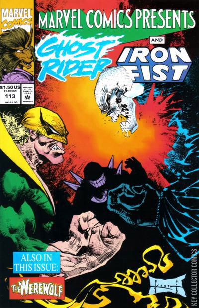 This issue features four stories."Typhoid's Kiss - Pt. 5: Mindfield" - starring Wolverine and Typhoid Mary"Rest and Sweet Glory - Chapter One: The 3rd Life of Bill Foster!" - starring Giant-Man"Legion of Vengeance - Part One: The Night has a Thousand Eyes" - starring Ghost Rider and Iron Fist"Mercy Mission" - In the Canadian woods, the Werewolf tracks the Wendigo, racing against time. He finds the cannibalistic creature feeding on a victim. The Werewolf attacks his quarry and they struggle until the lycanthrope manages to climb onto the Wendigo's back and grip the creature in a headlock. The Wendigo falls unconscious, just in time to transform into his former human self, a change that occurs once a year. The Werewolf's intent is to kill the man while human to end his suffering, but the man reveals his glee about being a killer. The Werewolf leaves the man to his well-deserved fate.
