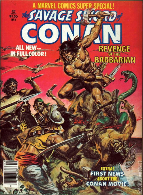 This special issue contains the following:A two page map of the Hyborian Age by Rick HobergRevenge of the Barbarian - a "free" adaptation of Robert E. Howard's tale "Black Vulmea's Vengeance" in color."Meet the People Behind Conan" - an article by David A. Kraft with photos and biographies of the creators of this issue."Conan of the Silver Screen: A Super Special Report" - an article by James Delson about the then upcoming feature film starring Arnold Schwartzenegger complete with photos and concept art.